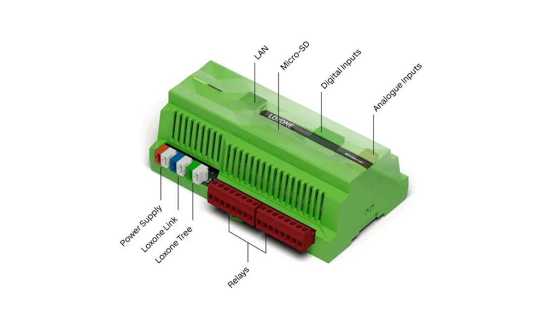 Der Miniserver ist das ultimative Werkzeug zur Automatisierung von Eigenheimen, Gewerbeobjekten und Spezialanwendungen. Als zentrale Steuereinheit der Haus- & Gebäudeautomation und mit zahlreichen Schnittstellen on-board erledigt er die meisten Aufgaben in punkto Sicherheit, Komfort und Energieeffizienz.